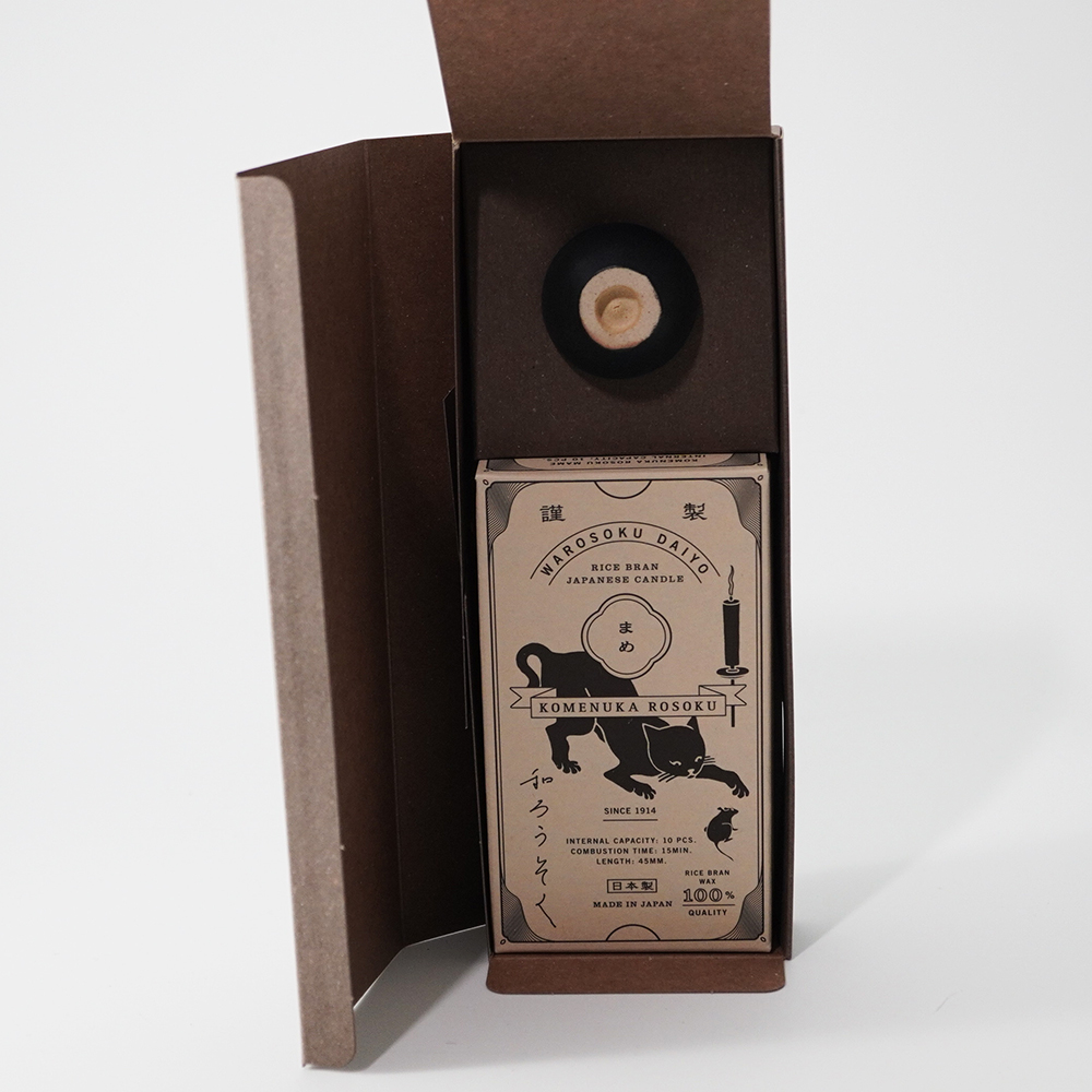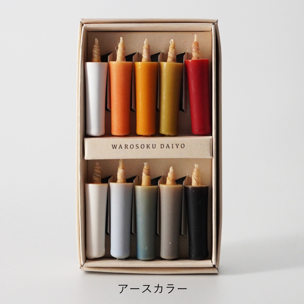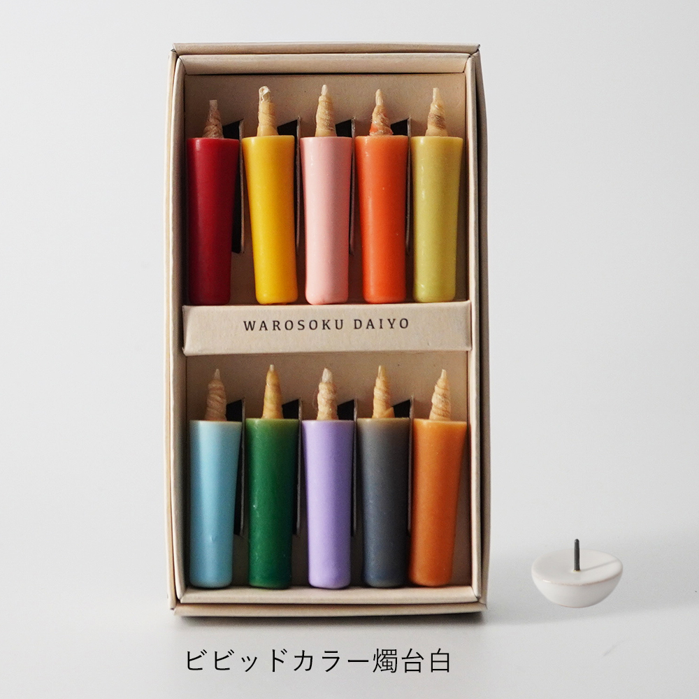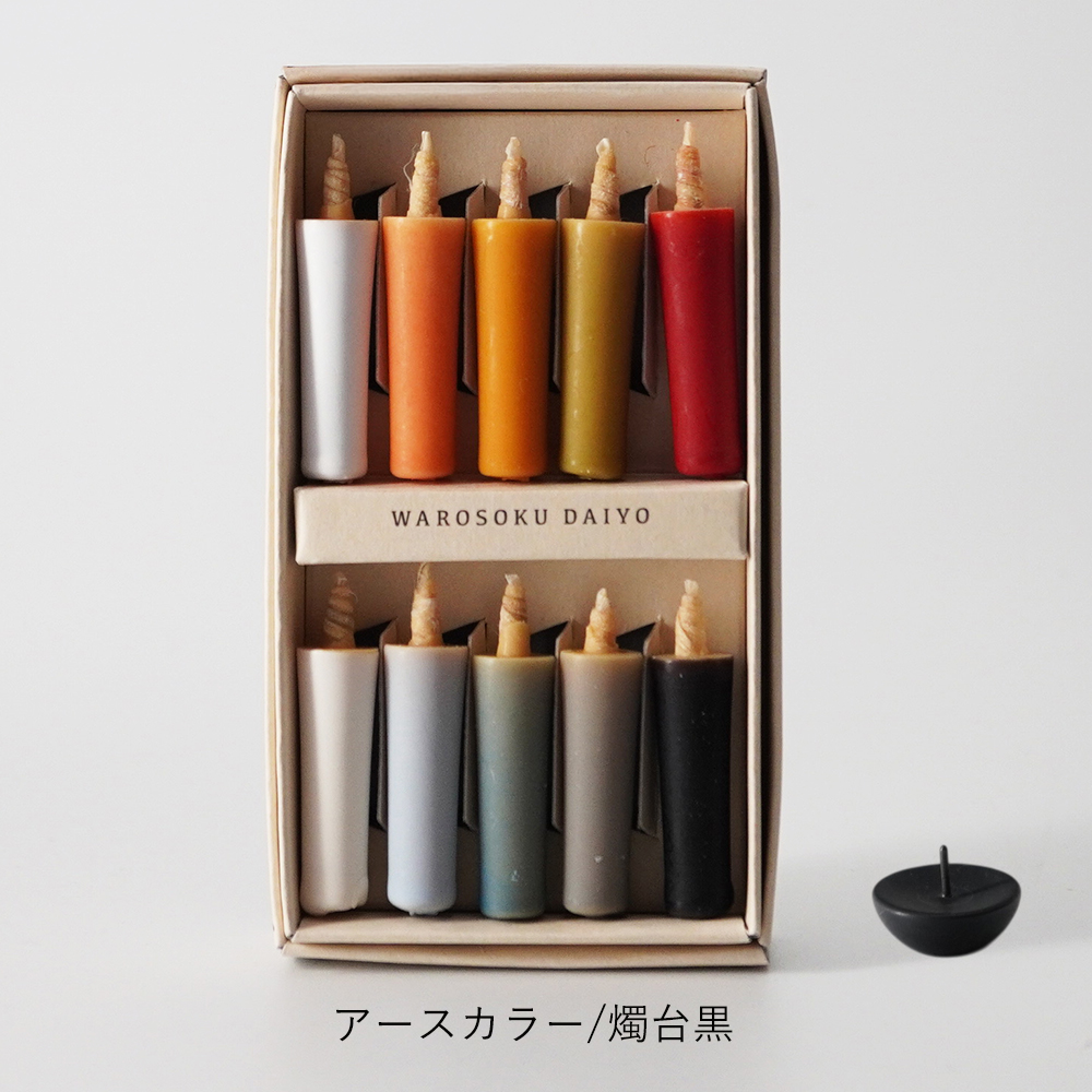 【和ろうそく 大與】米ぬかろうそく まめろうそく アースカラー/ビビッドカラー/白 燭台(黒/白)ギフトセット