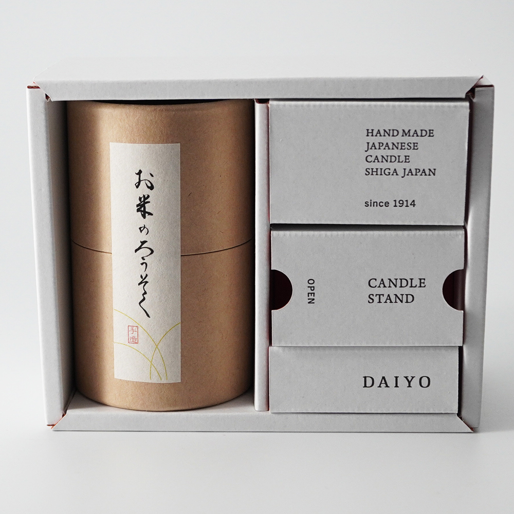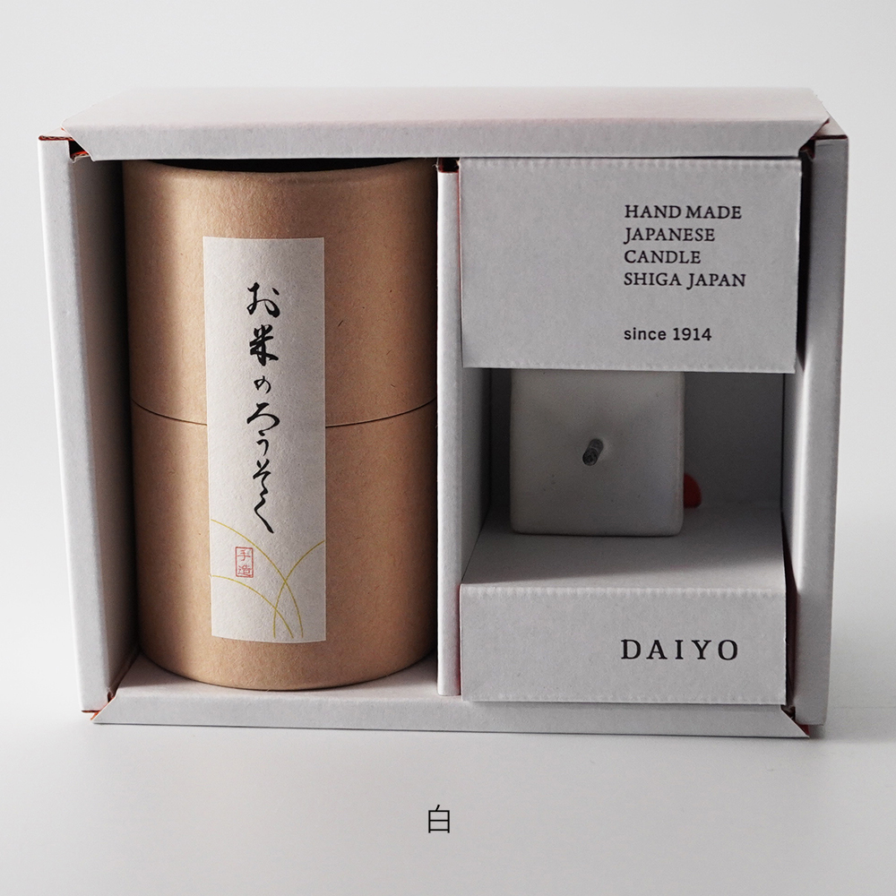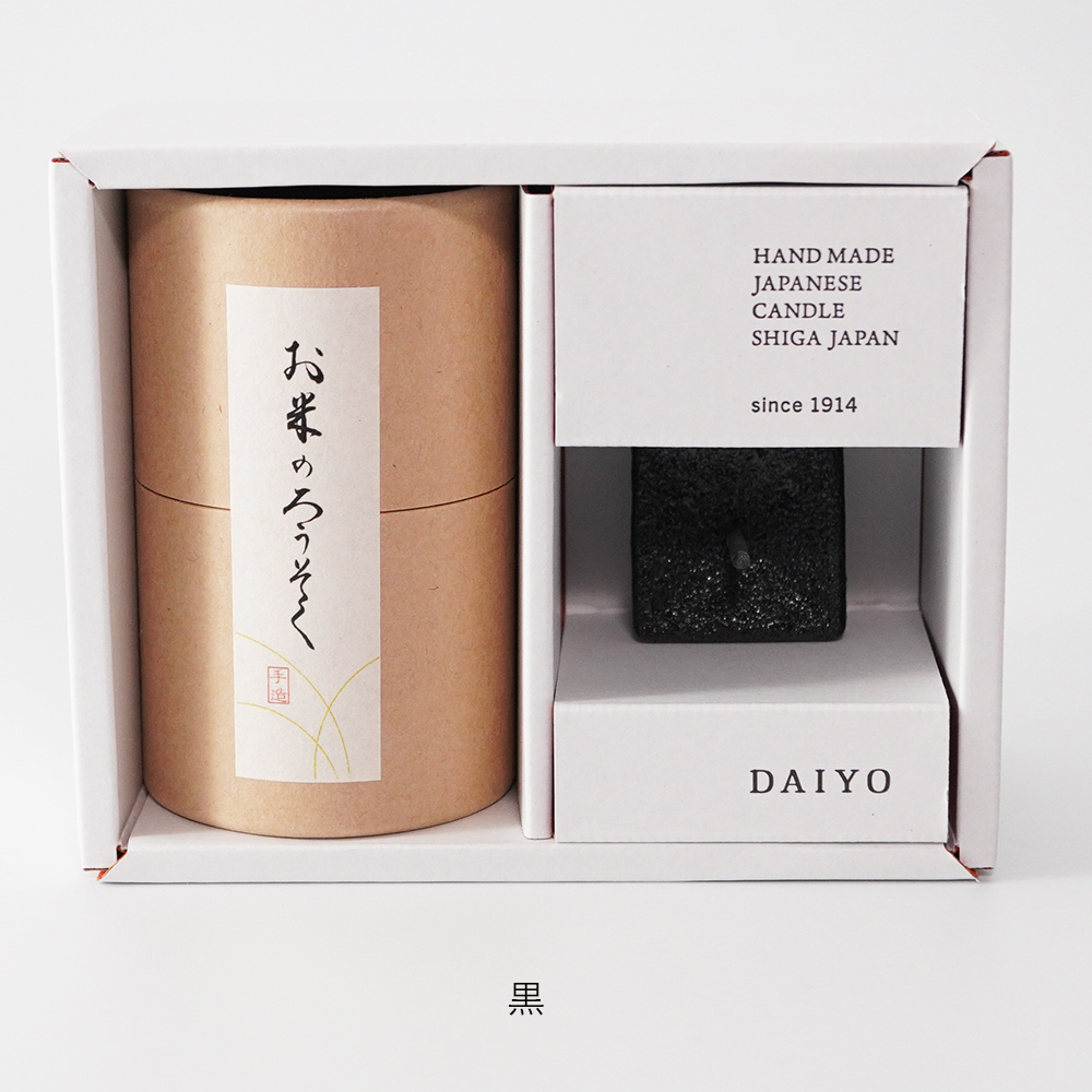 【和ろうそく 大與】お米のろうそく 1号1箱と燭台のセット 黒/白