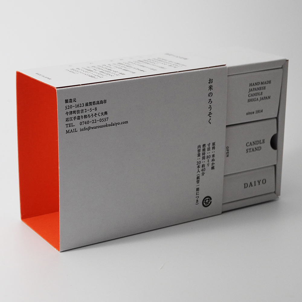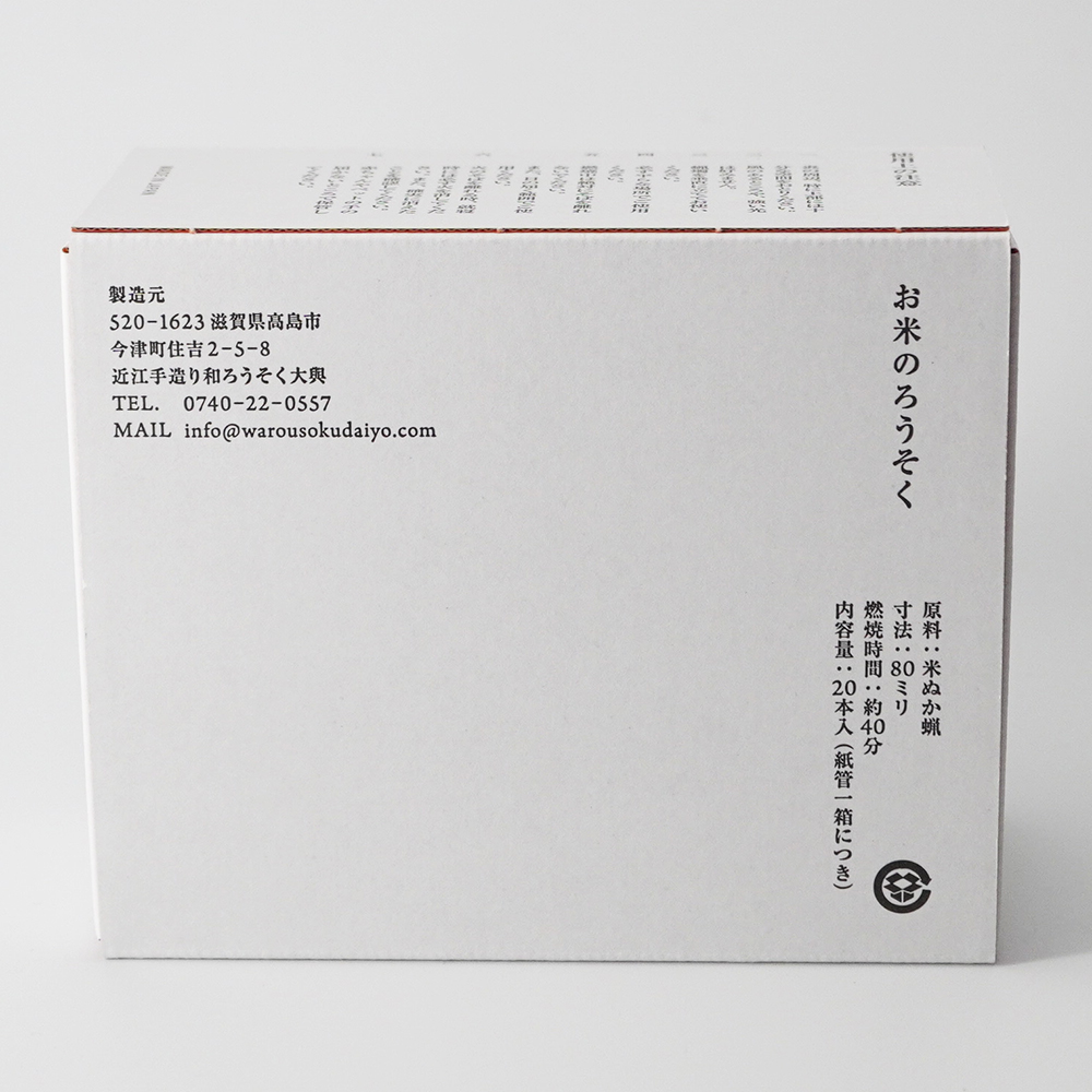 私たちの主食である「お米」のぬかから抽出された蝋(ろう)だけで作られた、100%植物性の和ろうそくです。
